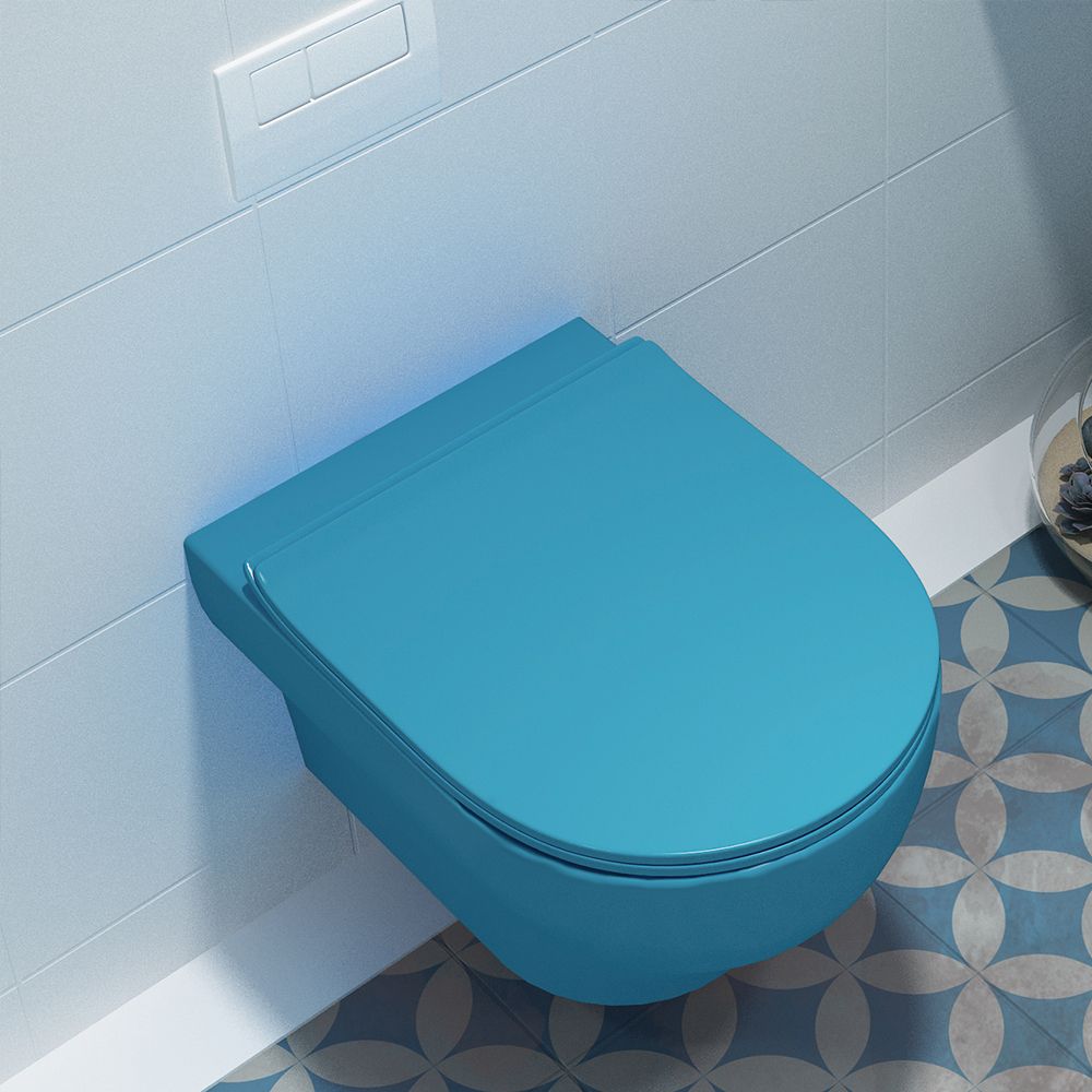 Rimless wall-hung toilet basin, with a smooth, inner surface and a fully glazed drainage, for easy cleaning. Cover: detachable, antibacterial, thin cover with a soft close mechanism (Urea Antibacterial Slim Soft Close). Color choice: Glossy white, matt black, matt white, matt gray, matt brown-beige and matt turquoise.