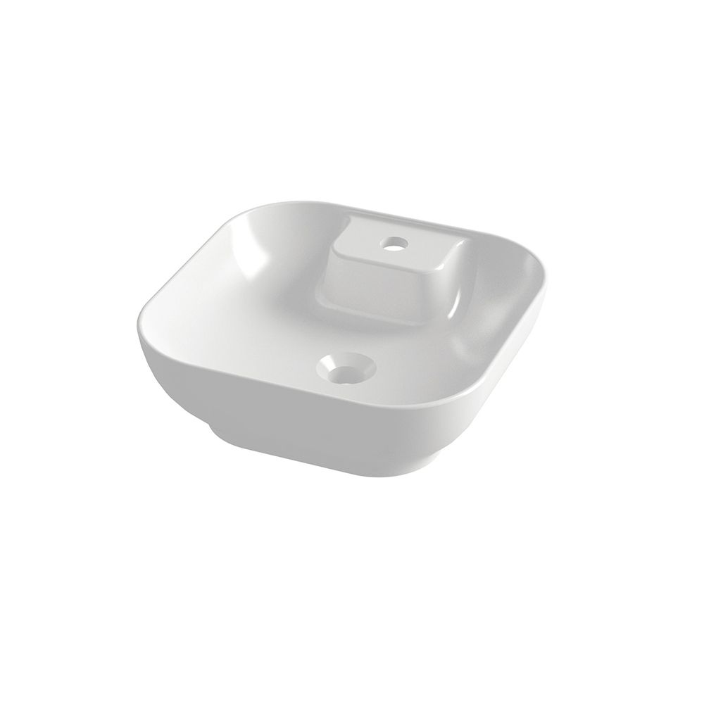 Countertop, bathroom, washbasin without an overflow in high-quality white, glossy porcelain. Washbasin dimensions 42x42 cm, with 15.2 cm height and basin depth 10.6 cm.