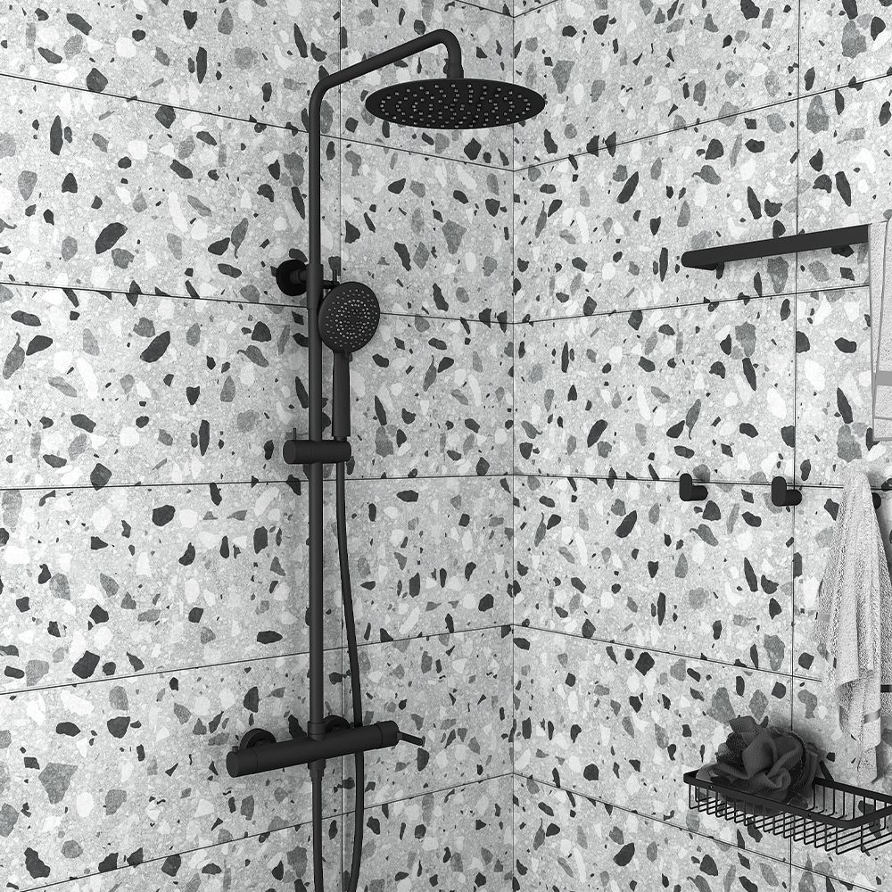 Marea shower column with an adjustable, brazen, rod (81-118 cm), stainless steel, rainfall shower head with a brazen ball joint (Φ250). The distributor is made, entirely, out of high-quality brazen. A 5-function, ABS, wall-mounted hand shower and a 150cm, smooth, spiral, flex shower column hose (PVC) are included.