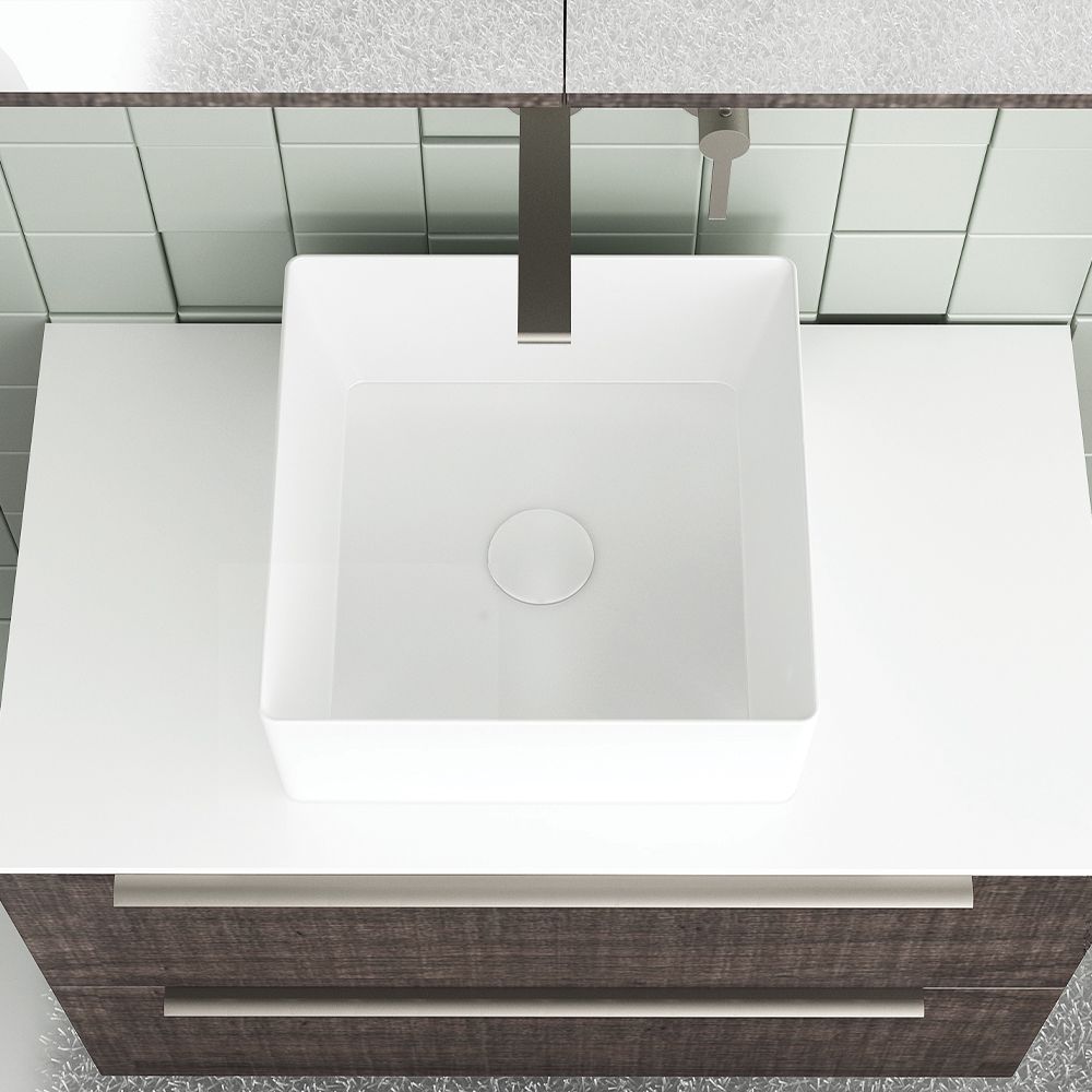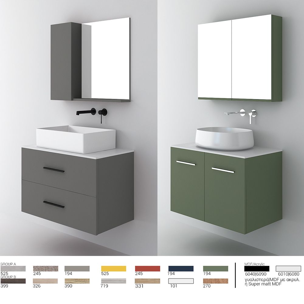 Wall-hung bathroom furniture Solid Surface 80 – Solid Surface furniture series. A heavy type, bathroom furniture, ideal for domestic use. It is consisted of a wall-hung base with two, doors or two drawers with soft close mechanisms and a 1.2cm countertop made out of a white homogeneous, material or a black HPL compact surface. You can complete the image of the furniture by adding a washbasin and a mirror of your choice and by choosing the handles that meet your needs. You can combine all Orabella bathroom furniture with one or more floor-standing or wall-hung, bathroom columns for extra storage space. Available in six different shades of wood and in white Laminate, as well as, in black and white glossy and matt acrylic on an mdf surface. Check out our new laminate, color gamma collection. Upon selection, you can add a wall-mounted, linear, led, bathroom light.