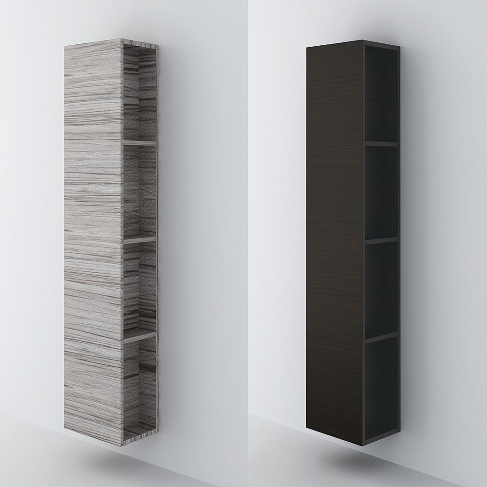 Totem is a reversible, wall-hung bathroom column, which features four external side-shelves and a single-door cabinet with a soft-close mechanism (BLUM) It is available in six different shades of wood and in white Laminate, as well as, in black and white glossy and matt acrylic on an mdf surface. Totem can also be turned into a floor column, if you choose the corresponding support legs.