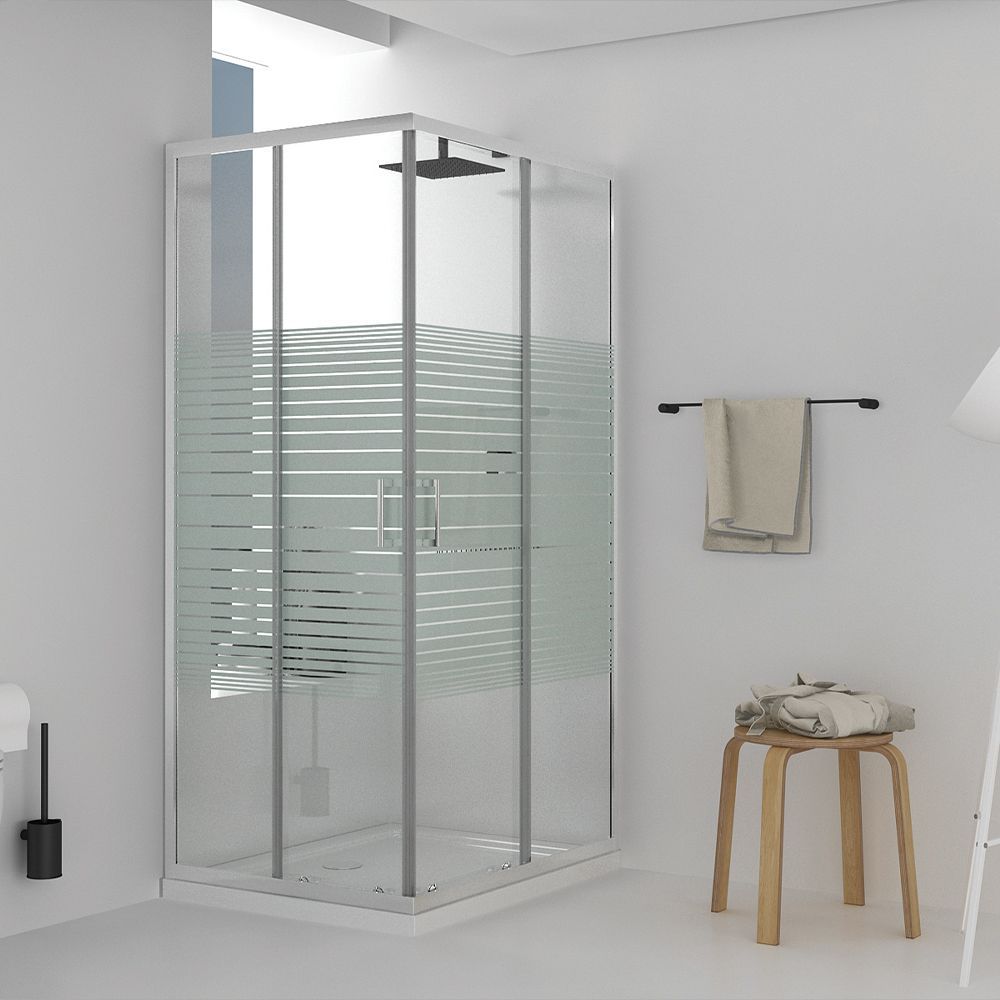Characteristics: Rectangular, corner entry, Shower Enclosure with Sliding Doors