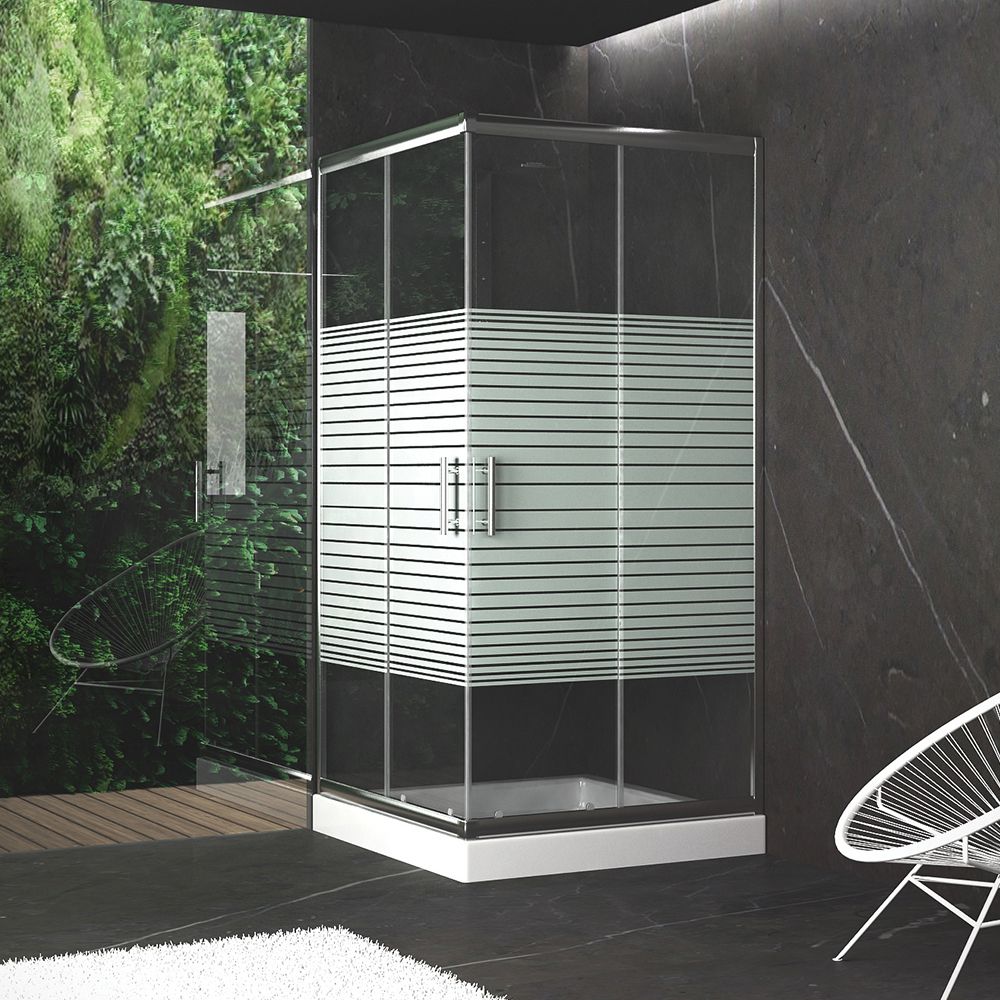 Characteristics: Square Shower Enclosure with Sliding Doors, corner entry