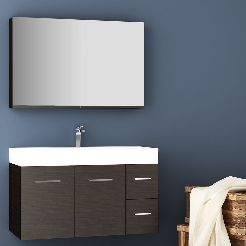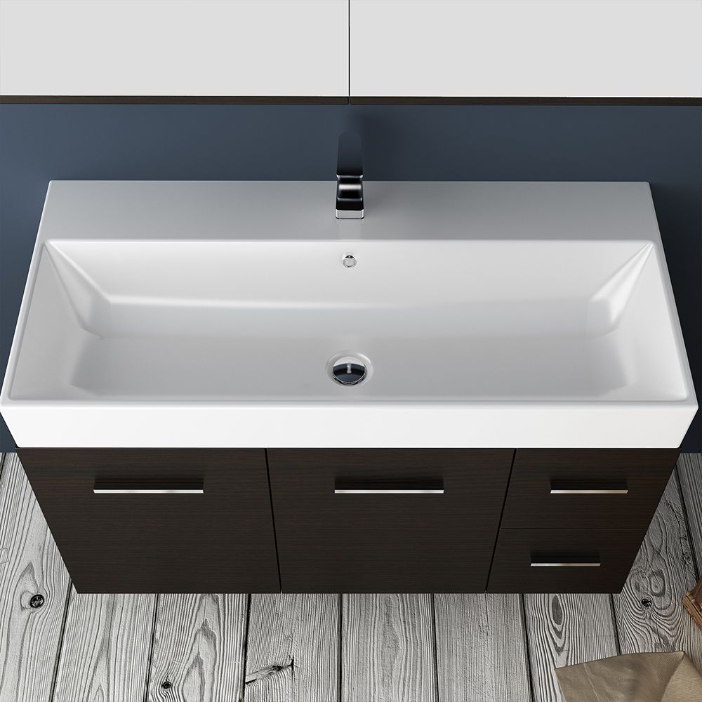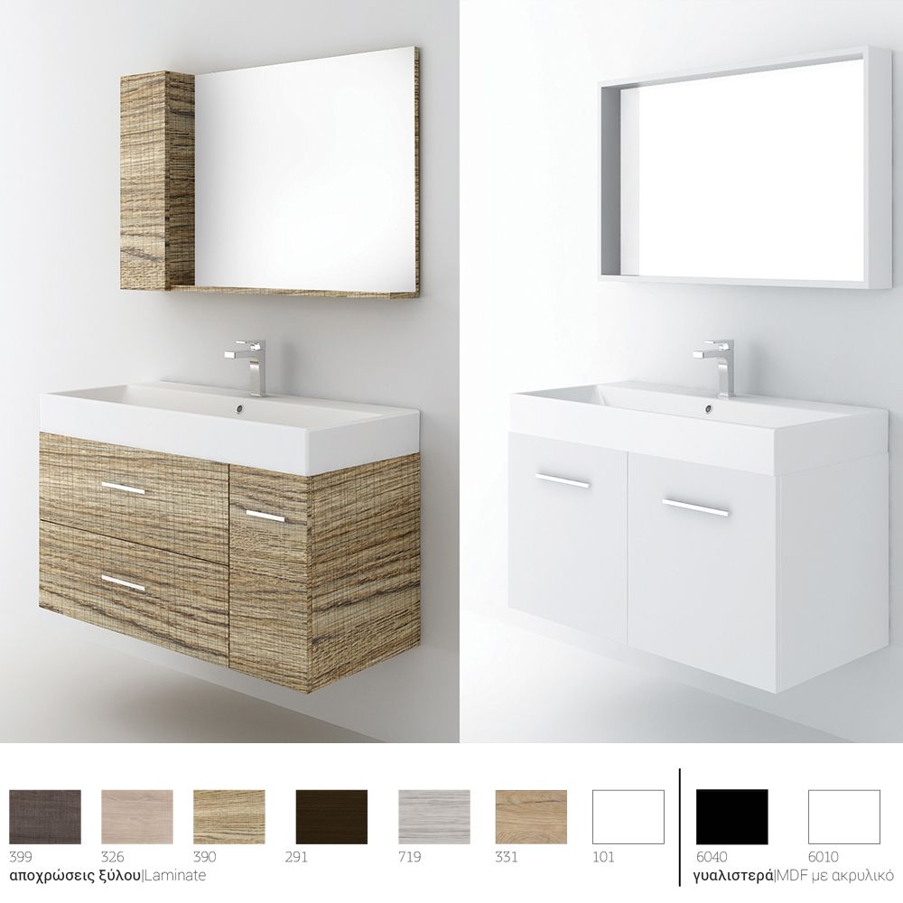 Κρεμαστό έπιπλο μπάνιου Amabile 100 – σειρά επίπλων Minimal. Ένα έπιπλο μπάνιου, βαρέως τύπου ιδανικό για οικιακή χρήση. Αποτελείται από, κρεμαστή βάση με δύο πόρτες ή δύο πόρτες και δύο συρτάρια ή τέσσερα συρτάρια ή μια πόρτα και δύο συρτάρια, με μηχανισμούς κλεισίματος soft close και νιπτήρα από πορσελάνη. Μπορείτε να ολοκληρώσετε την εικόνα του επίπλου προσθέτοντας καθρέπτη δικής σας επιλογής (ντουλάπι, εταζέρα με ντουλαπάκι ή καθρέπτη με πλαίσιο) και τα πόμολα που ταιριάζουν στο δικό σας μπάνιο. Όλα τα έπιπλα της εταιρείας Orabella μπορούν να πάρουν στήλες μπάνιου επιδαπέδιες ή κρεμαστές για επιπλέον χώρο αποθήκευσης, ενώ υπάρχει δυνατότητα προσθήκης ντουλαπιού πλυντηρίου σε χρώμα δικής σας επιλογής. Διατίθεται σε έξι διαφορετικές αποχρώσεις ξύλου και σε λευκό χρώμα-Laminate καθώς και σε μαύρο και λευκό γυαλιστερό και ματ ακρυλικό σε mdf. Κατόπιν επιλογής, μπορεί να συνοδευτεί με γραμμικό φωτιστικό μπάνιου Led.