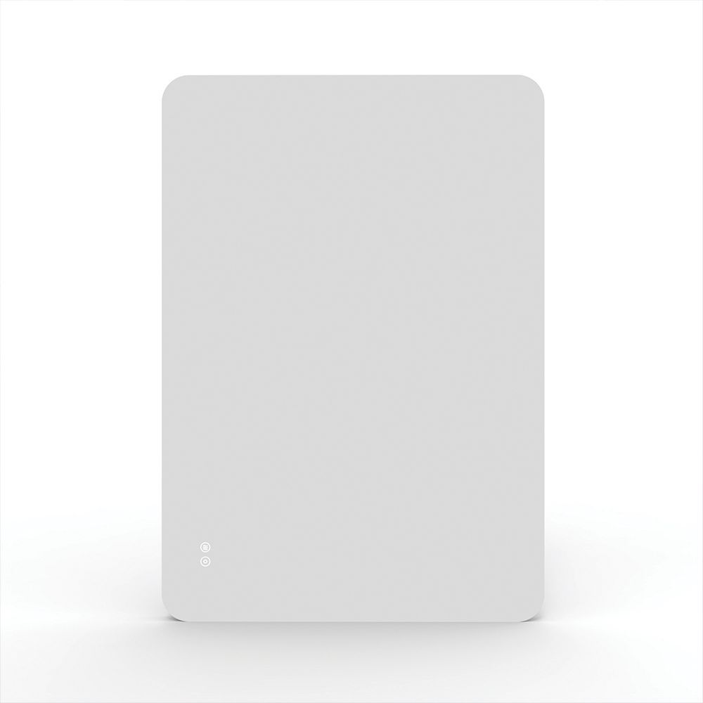 Επιτοίχιος καθρέπτης μπάνιου LED, χωρίς πλαίσιο με κρυφό οπίσθιο φωτισμό. Διαθέτει 2 κουμπιά με αισθητήρες αφής on/off και anti-fog αντιθαμβωτικό σύστημα. Χρώμα φωτισμού RGB: δυνατότητα επιλογής μεταξύ 3.000 Κ (θερμό), 4.000 Κ (ουδέτερο) και 6.500 Κ (ψυχρό). Δείκτης προστασίας (Βαθμός αδιαβροχοποίησης): IP44. Διατίθεται σε τέσσερεις διαφορετικές διάστασεις και σχήματα.