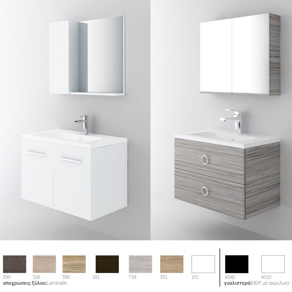 Κρεμαστό έπιπλο μπάνιου Mood 80 – σειρά επίπλων Slim. Ένα έπιπλο μπάνιου, βαρέως τύπου ιδανικό για οικιακή χρήση. Αποτελείται από, κρεμαστή βάση με δύο πόρτες ή δύο συρτάρια με μηχανισμούς κλεισίματος soft close και νιπτήρα από πορσελάνη. Η βάση διατίθεται και σε επιδαπέδια (Mood 80 Long). Μπορείτε να ολοκληρώσετε την εικόνα του επίπλου προσθέτοντας καθρέπτη δικής σας επιλογής (ντουλάπι, εταζέρα με ντουλαπάκια ή καθρέπτη με πλαίσιο) και τα πόμολα που ταιριάζουν στο δικό σας μπάνιο. Όλα τα έπιπλα της εταιρείας Orabella μπορούν να πάρουν στήλες μπάνιου επιδαπέδιες ή κρεμαστές για επιπλέον χώρο αποθήκευσης, ενώ υπάρχει δυνατότητα προσθήκης ντουλαπιού πλυντηρίου σε χρώμα δικής σας επιλογής. Διατίθεται σε έξι διαφορετικές αποχρώσεις ξύλου και σε λευκό χρώμα-Laminate καθώς και σε μαύρο και λευκό γυαλιστερό και ματ ακρυλικό σε mdf. Κατόπιν επιλογής, μπορεί να συνοδευτεί με γραμμικό φωτιστικό μπάνιου Led.