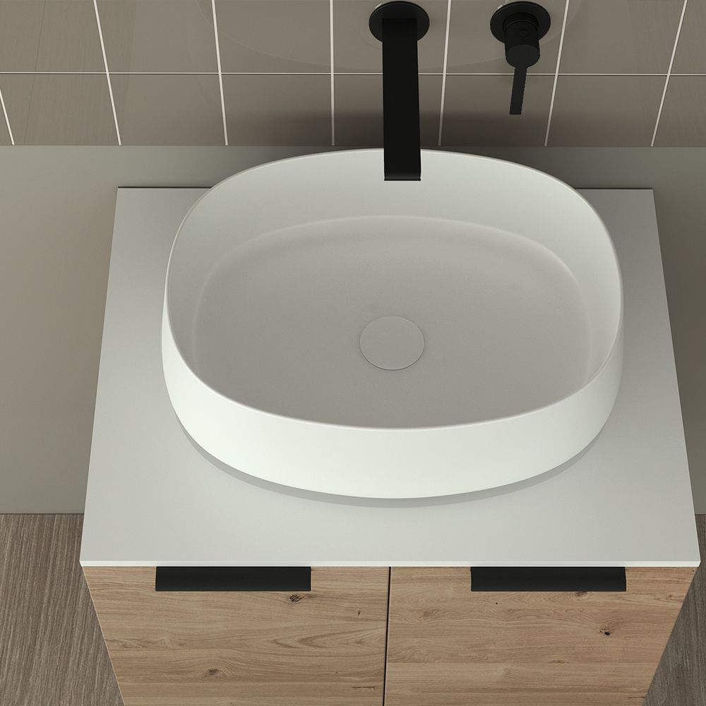 Κρεμαστό έπιπλο μπάνιου Solid Surface 60 – σειρά επίπλων Solid Surface. Ένα έπιπλο μπάνιου, βαρέως τύπου ιδανικό για οικιακή χρήση. Αποτελείται από, κρεμαστή βάση με δύο πόρτες και 1.2 εκατοστά λευκό, ομοιογενές υλικό πάγκου ή μαύρο HPL compact. Μπορείτε να ολοκληρώσετε την εικόνα του επίπλου προσθέτοντας επικαθήμενο νιπτήρα και καθρέπτη δικής σας επιλογής και τα πόμολα που ταιριάζουν στο δικό σας μπάνιο. Όλα τα έπιπλα της εταιρείας Orabella μπορούν να πάρουν στήλες μπάνιου επιδαπέδιες ή κρεμαστές για επιπλέον χώρο αποθήκευσης, ενώ υπάρχει δυνατότητα προσθήκης ντουλαπιού πλυντηρίου σε χρώμα δικής σας επιλογής. Διατίθεται σε έξι διαφορετικές αποχρώσεις ξύλου και σε λευκό χρώμα-Laminate καθώς και σε μαύρο και λευκό γυαλιστερό και ματ ακρυλικό σε mdf. Τσεκάρετε και τα νέα χρωμάτα Laminate. Κατόπιν επιλογής, μπορεί να συνοδευτεί με γραμμικό φωτιστικό μπάνιου Led.